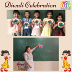 The teachers taught the students more about the festival through PowerPoints and videos related to the festival. Various activities were done by the tiny tots in which the Nursery students made 3D diyas, the Jr.kg students made greeting cards and the Sr.kg students made wall hangings. They took their art work back home for decorating their houses.