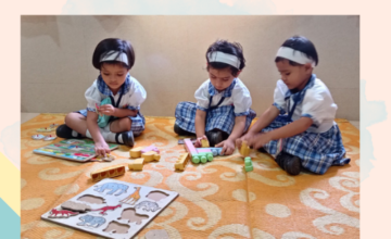 The students made a crown with the help of their mothers and placed it on their mothers’ heads to show them how special they are. This made the mothers feel on top of the world. Even the students of Nursery made a bracelet for their mothers and the Sr.kg. children made puppets of their mothers with a small note of “I love you Mom” written on it. This is how all children expressed their genuine love and appreciation for their moms.