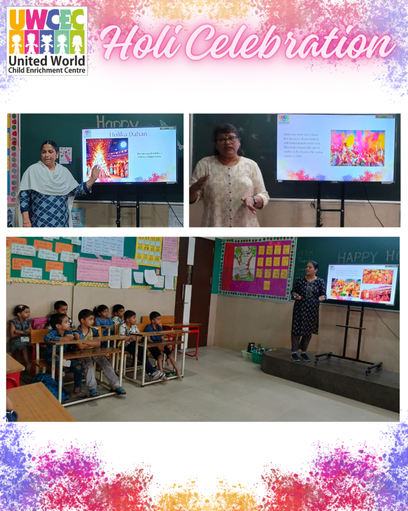 At UWCEC, the rituals of Holi were explained through a powerpoint presentation in which Holikadahan, Dhulivandan and Rang Panchami’s importance were explained. The importance of using natural and non-toxic colours, not to waste water, and not to put colours on animals were explained by the teachers.