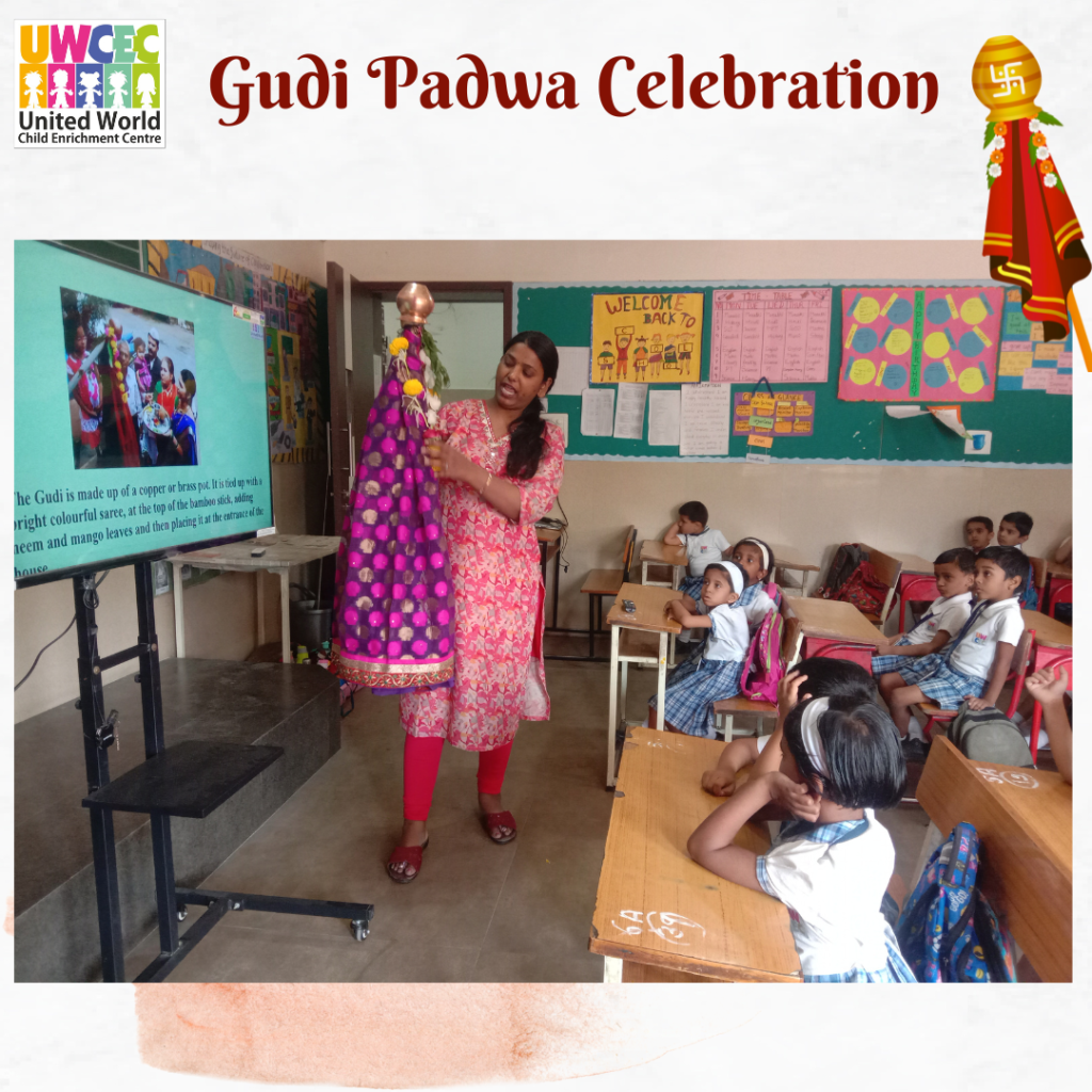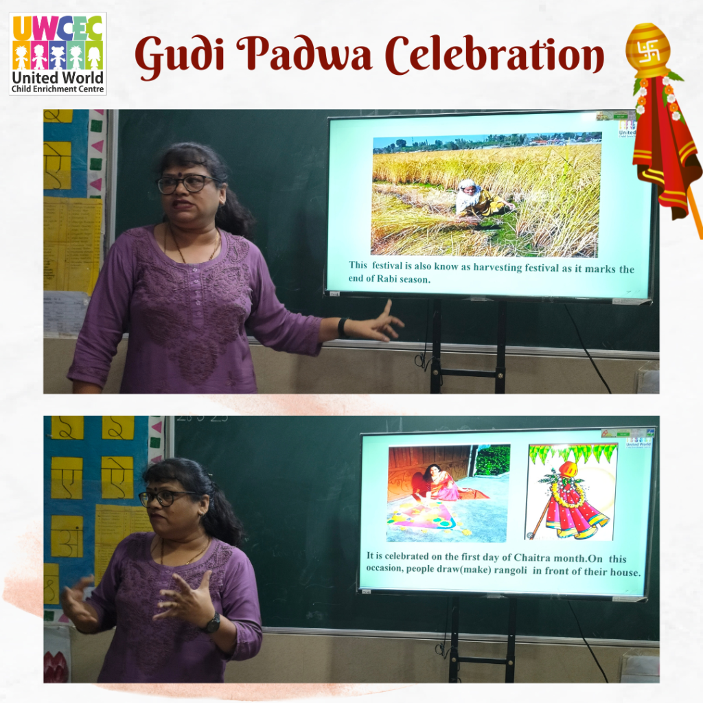At UWCEC, the teachers explained to the students why we celebrate Gudi Padwa by showing them a powerpoint presentation and also a video based on the story of Gudi Padwa.