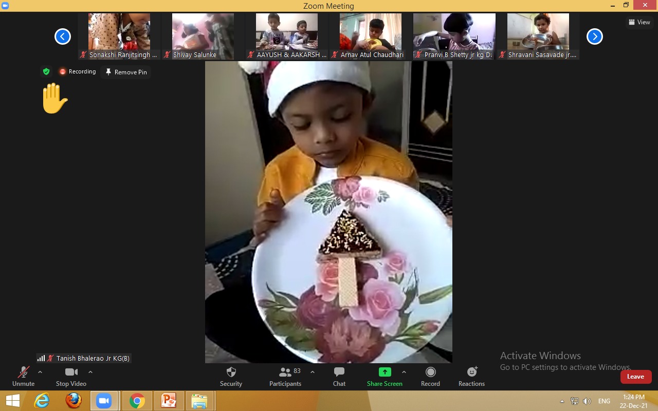 Christmas cannot be complete without yummilicious desserts and so children prepared Chocolate tree with the help of bread, choco syrup and waffles which was loved by all!