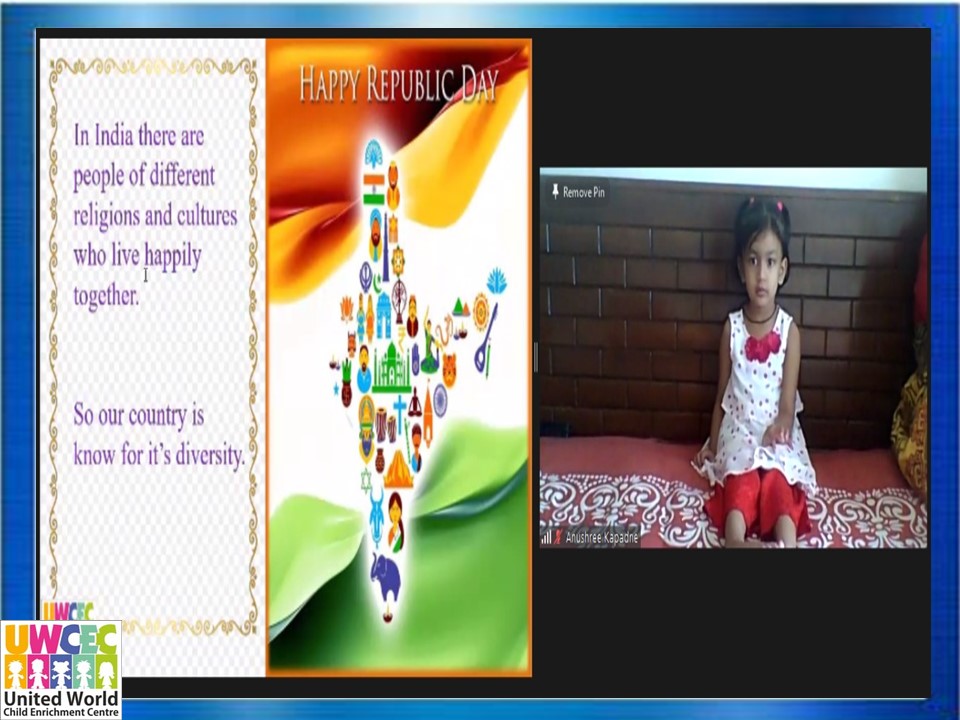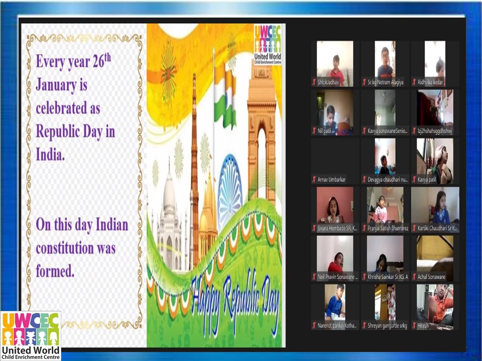 In UWCEC, Republic Day was celebrated with great pride in their online session. Students and teachers dressed up in tricolor clothes. Students were explained the importance of the Indian constitution and the significance of our National Flag.