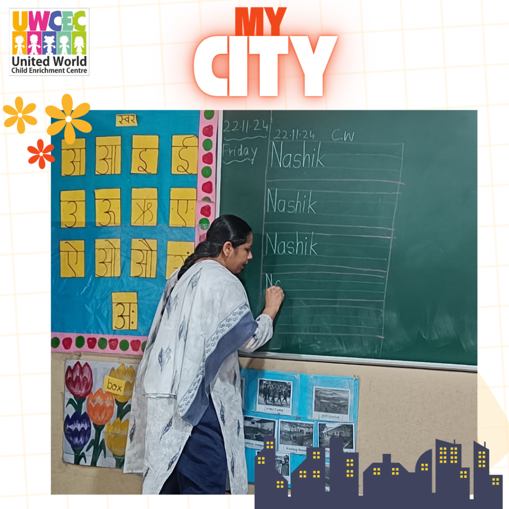 Through interactive lessons and engaging PowerPoint presentations, students explored their city’s location on the map and identified key public places such as railway stations, museums, and hospitals. They also learned about religious sites, industrial areas, and even army training centers, deepening their connection to their community. Teachers also encouraged students to spell the name of their city, further building their confidence and knowledge.