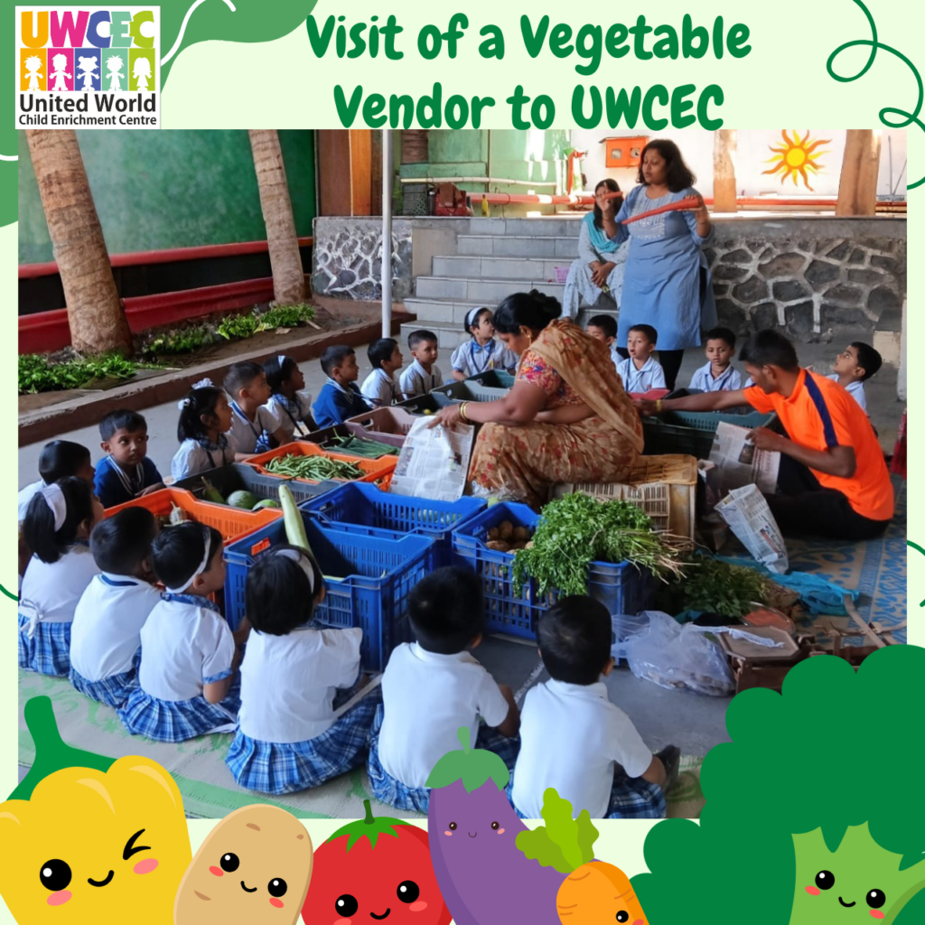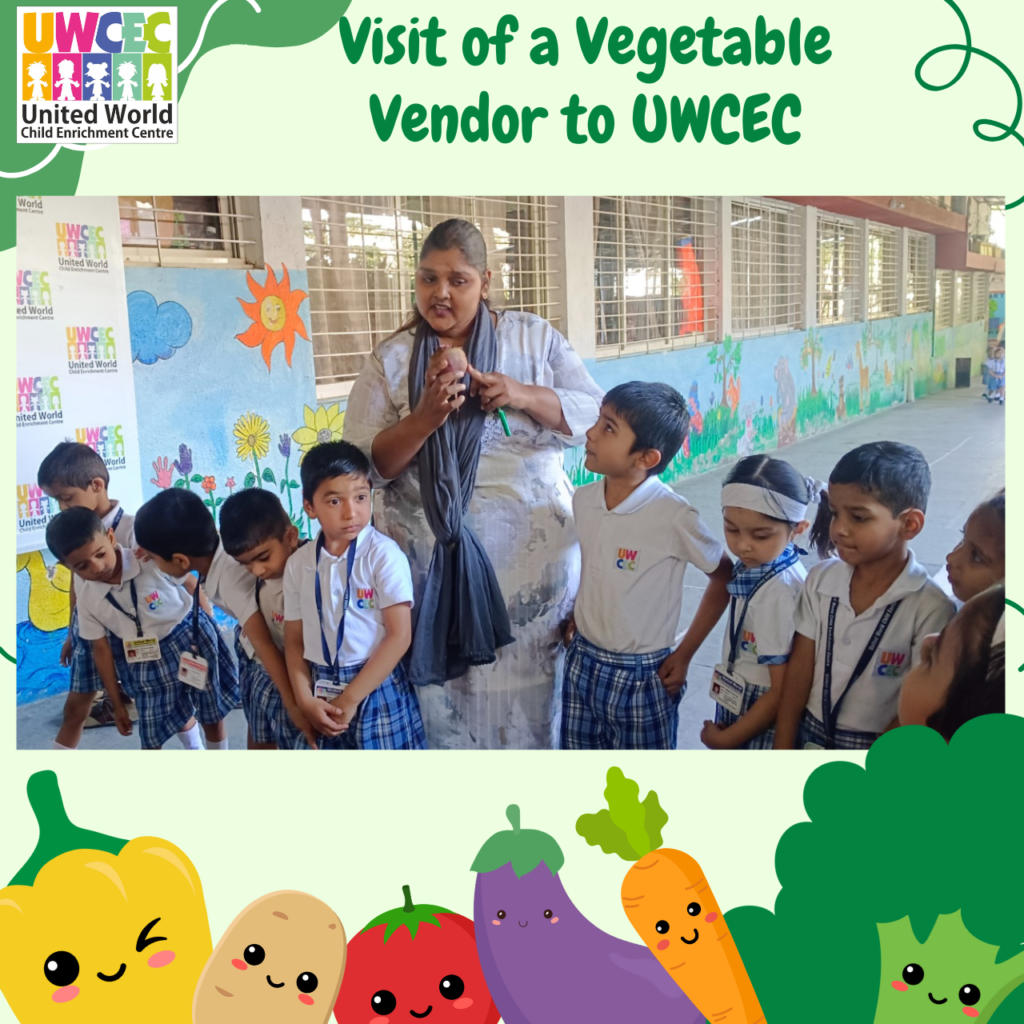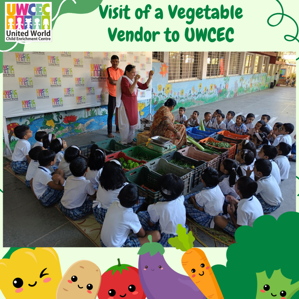 UWCEC recently welcomed a local vegetable vendor to campus, turning a regular school day into a hands-on learning experience. The vibrant display of fresh produce instantly captivated the children, sparking curiosity about colors, textures and flavors.