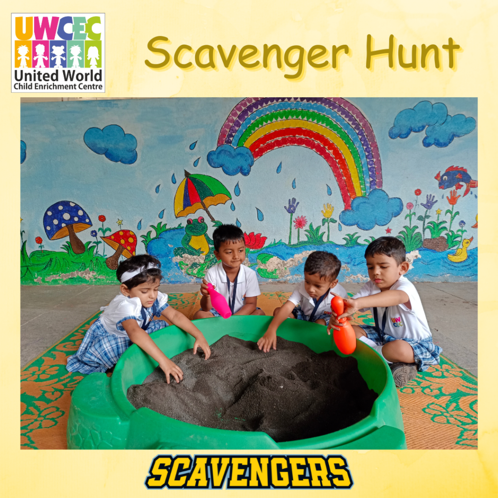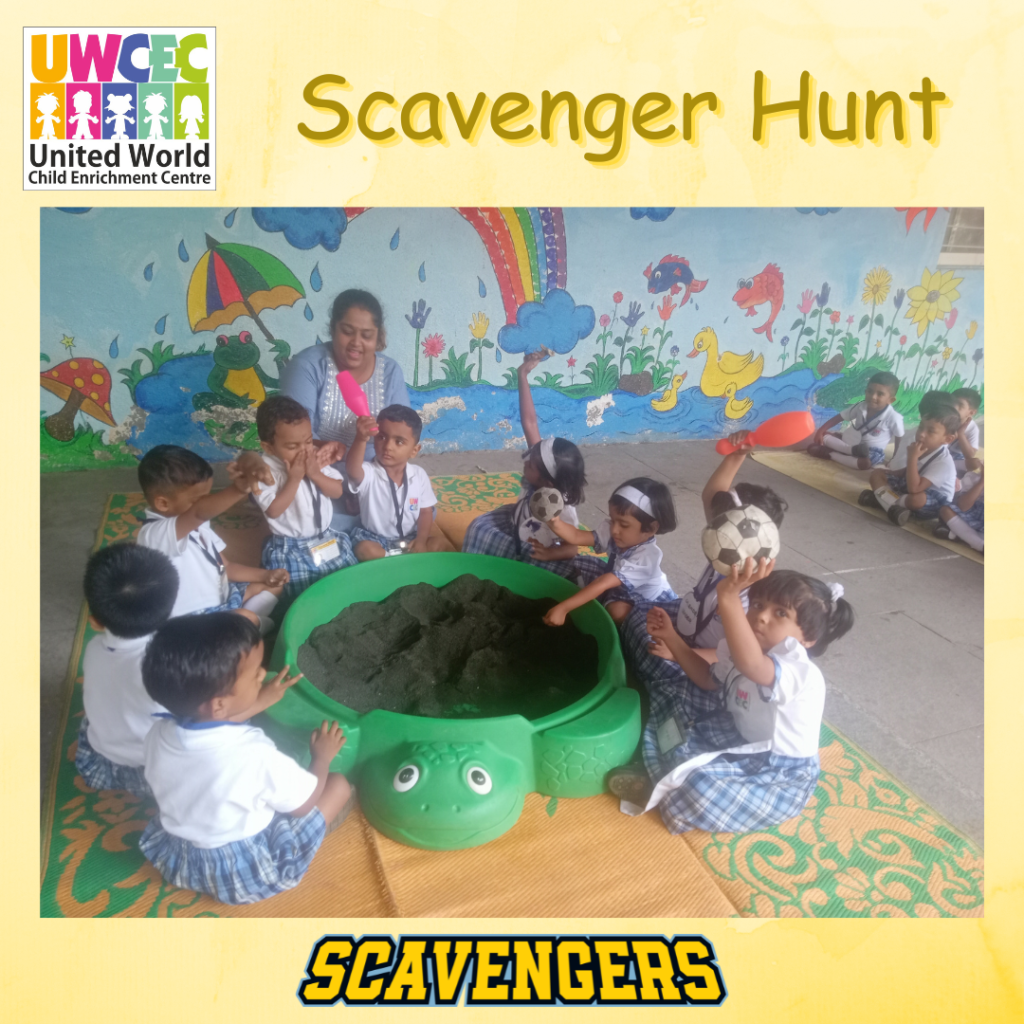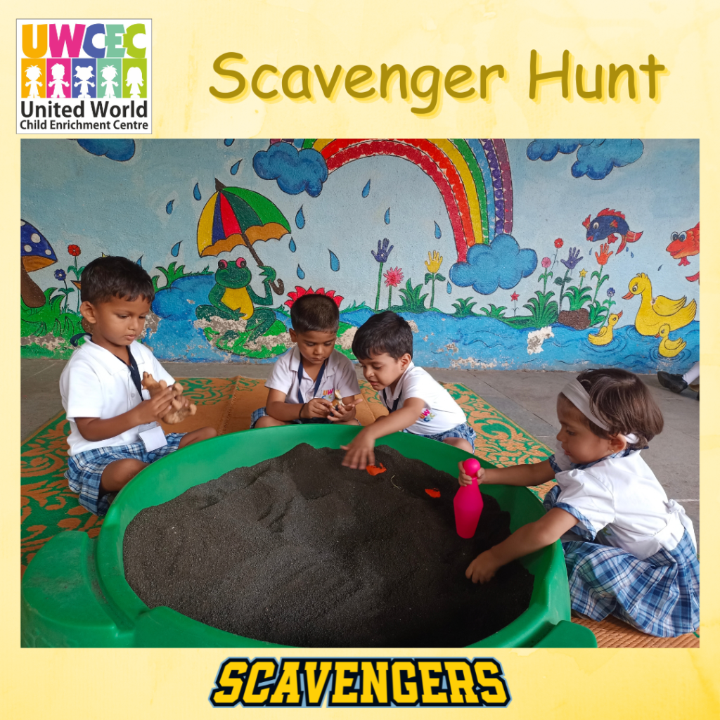 At UWCEC the children enjoyed playing a scavenger hunt in the sand. They looked for big and small objects in the sand. In this process they touched the sand and understood its texture. This game helped to develop their gross motor and fine motor skills.