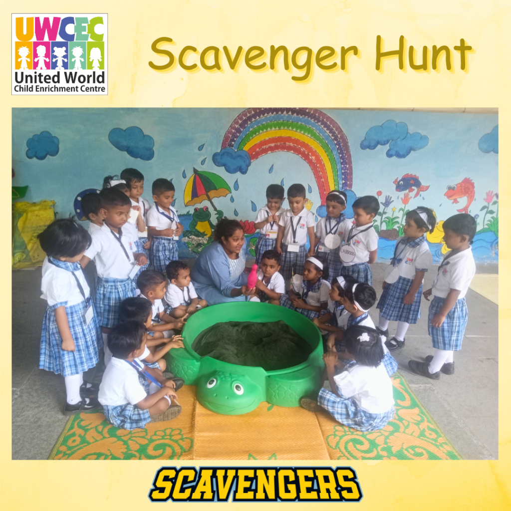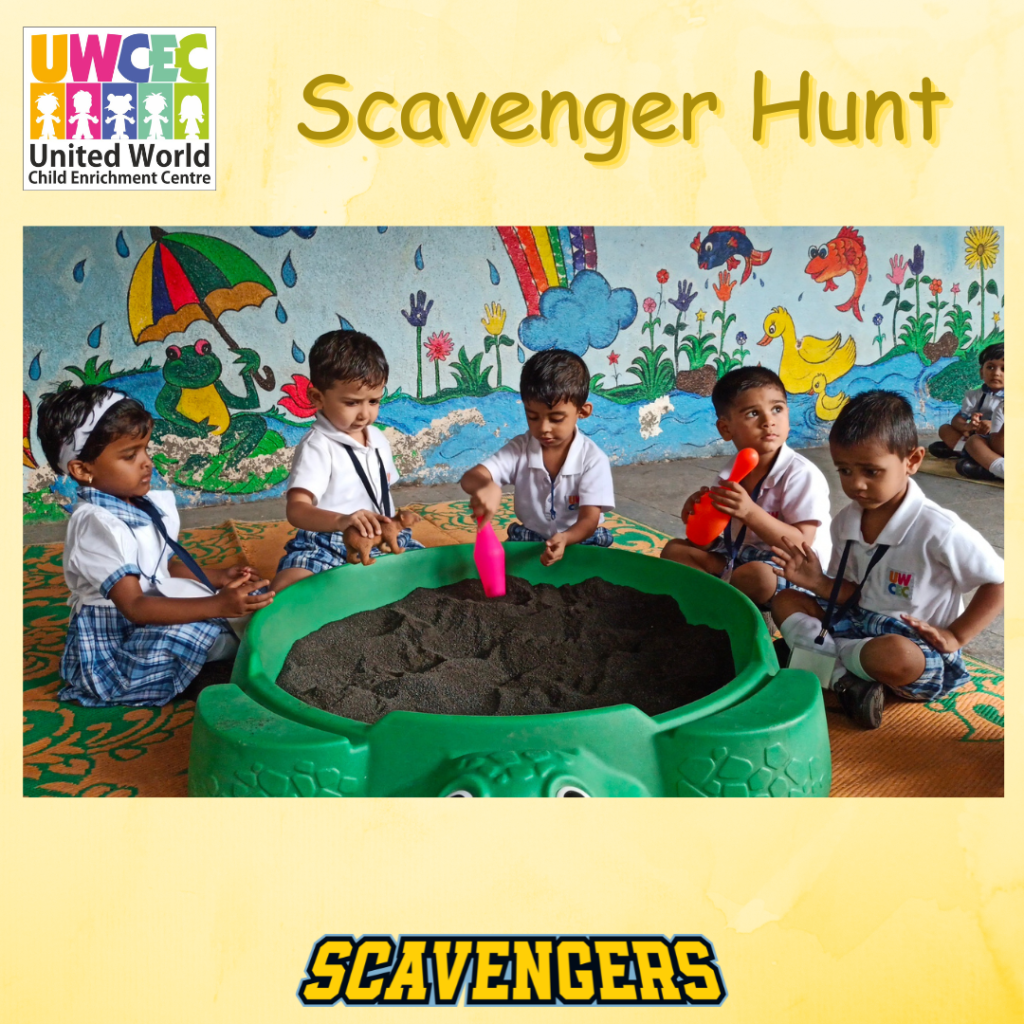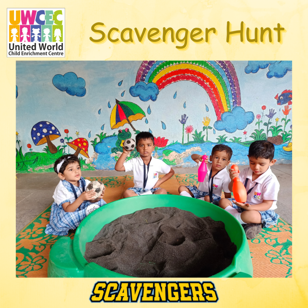 At UWCEC the children enjoyed playing a scavenger hunt in the sand. They looked for big and small objects in the sand. In this process they touched the sand and understood its texture. This game helped to develop their gross motor and fine motor skills.