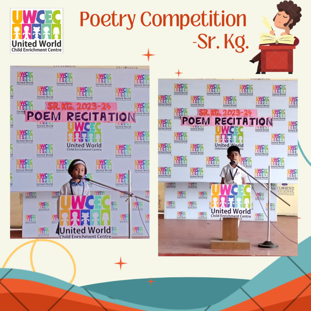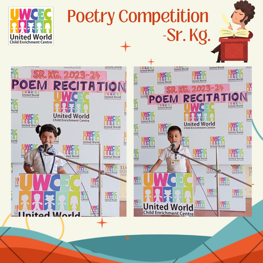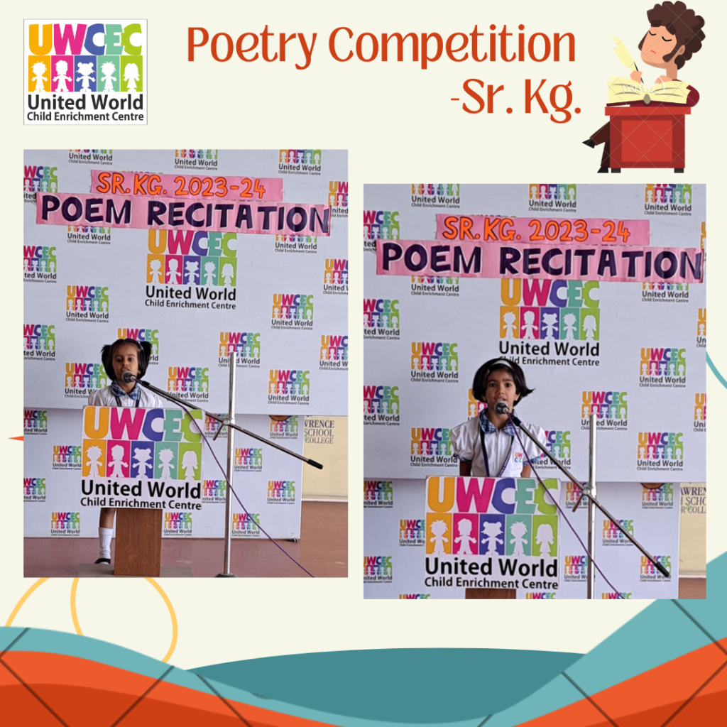 At UWCEC a poem recitation competition was organised for Sr.Kg. students. Children actively took part in the competition. The competition inspired the children to come forward and recite on stage. They came up with different poems and recited them with zeal and enthusiasm in front of everybody.