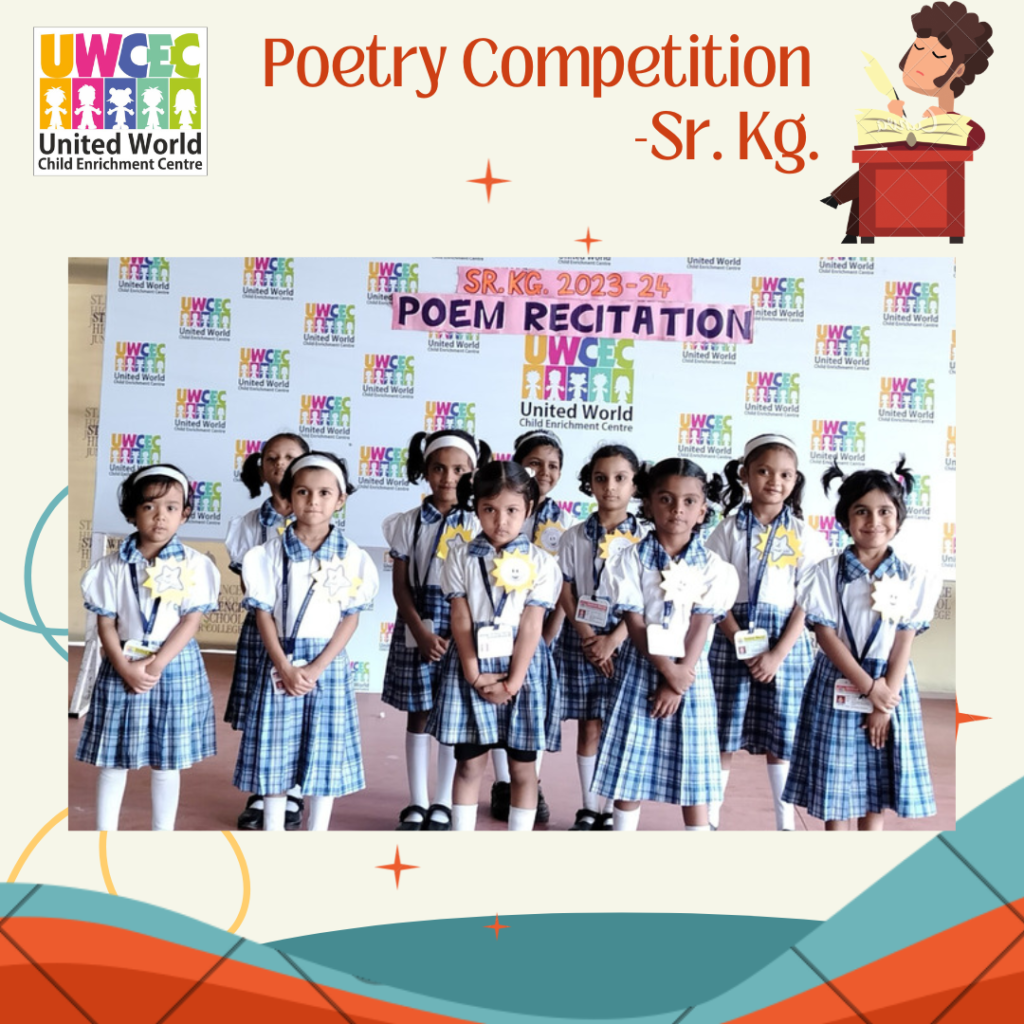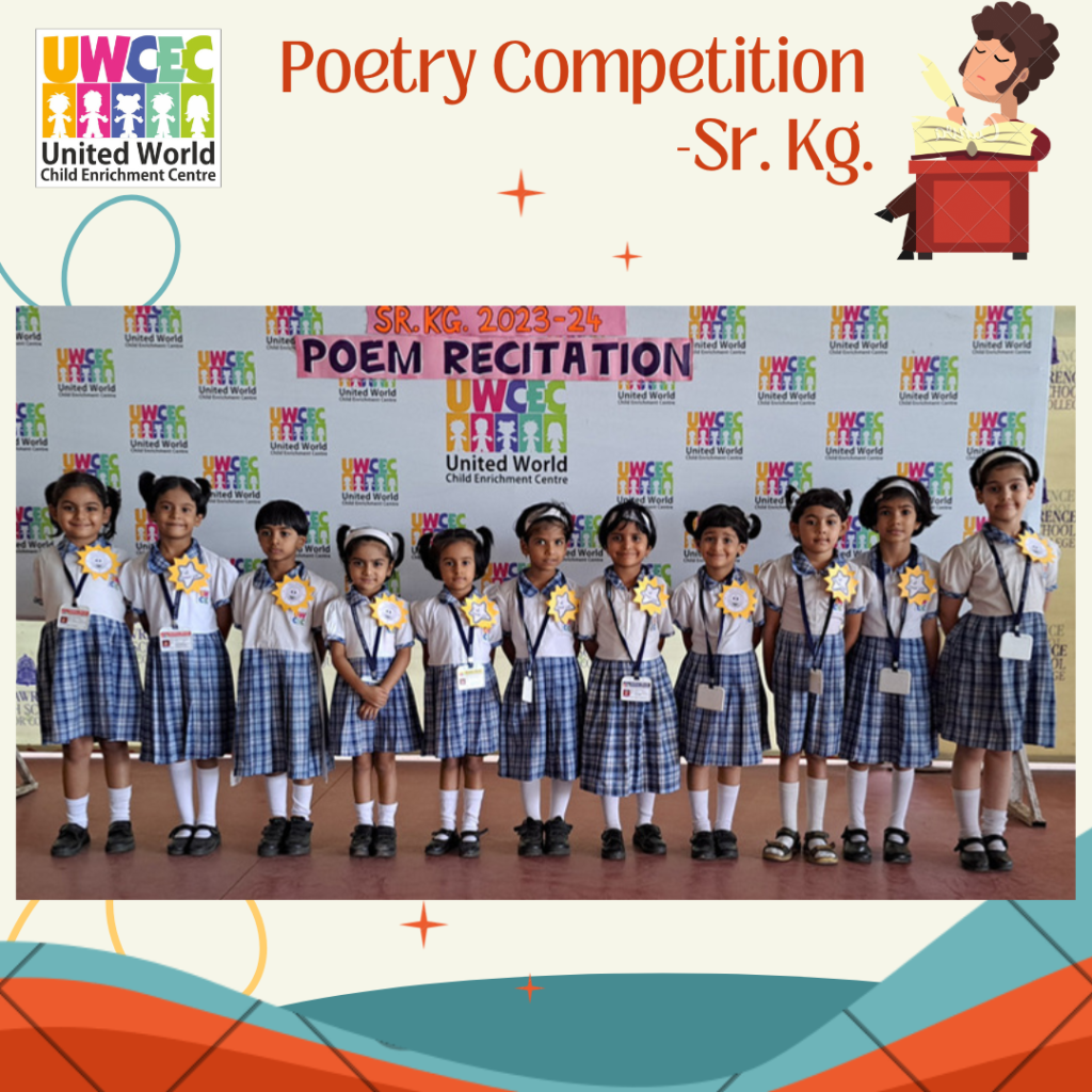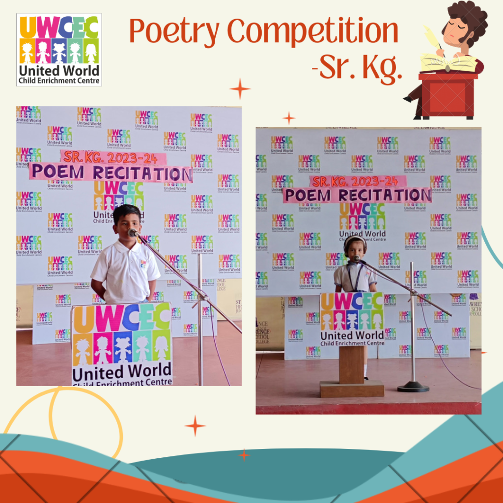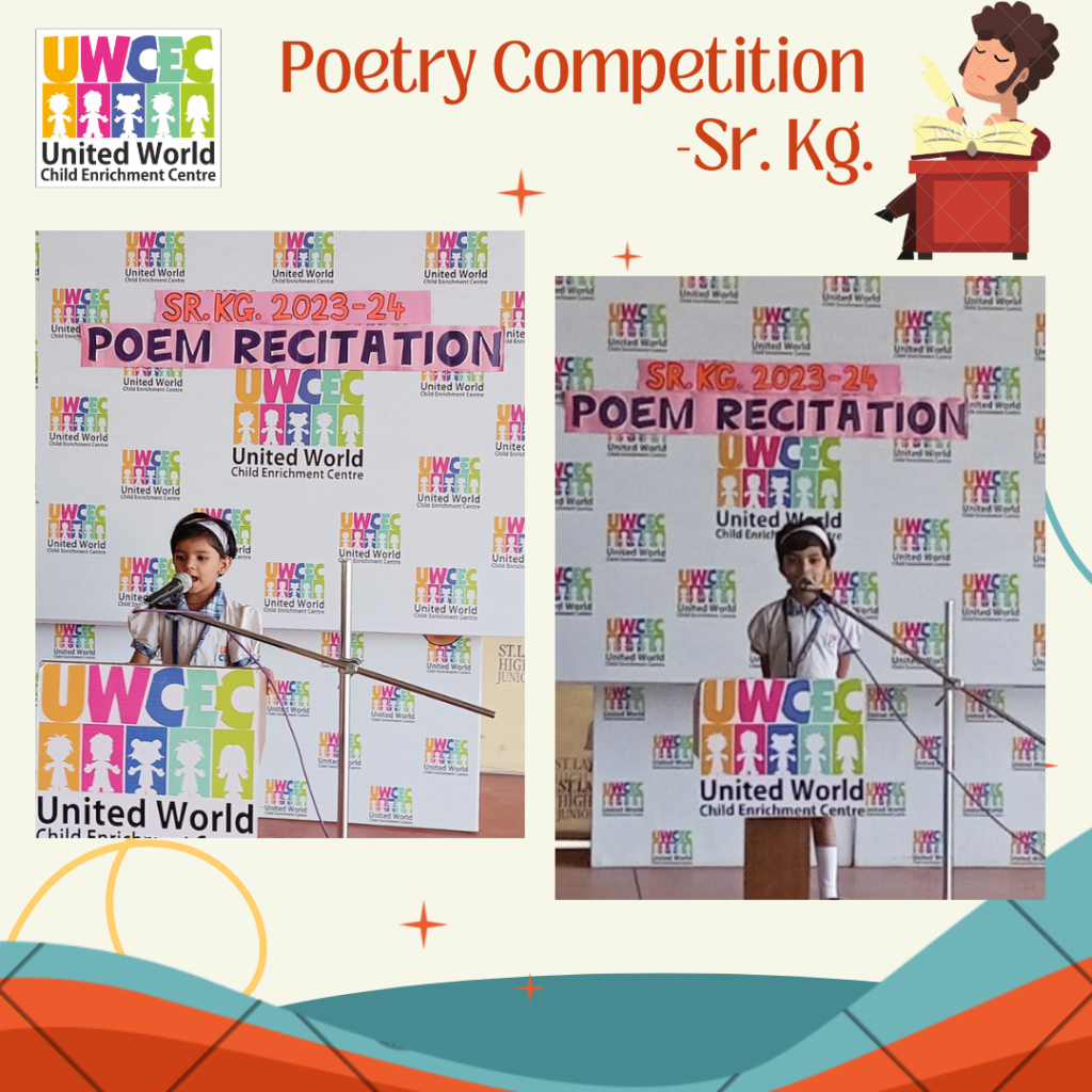 At UWCEC a poem recitation competition was organised for Sr.Kg. students. Children actively took part in the competition. The competition inspired the children to come forward and recite on stage. They came up with different poems and recited them with zeal and enthusiasm in front of everybody.