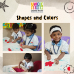 At UWCEC the teachers organized a few games and activities related to a red circle. Students were shown different objects and among those, they had to identify the red circle. They loved doing this. There was also a worksheet of the color red as reinforcement.