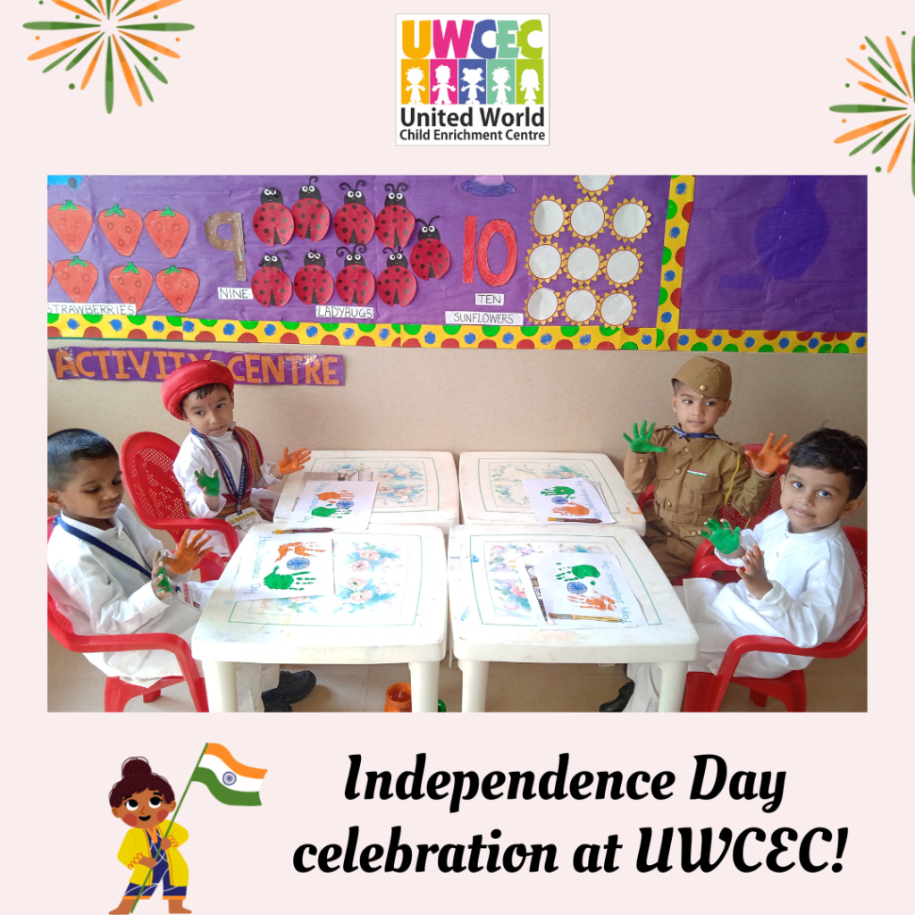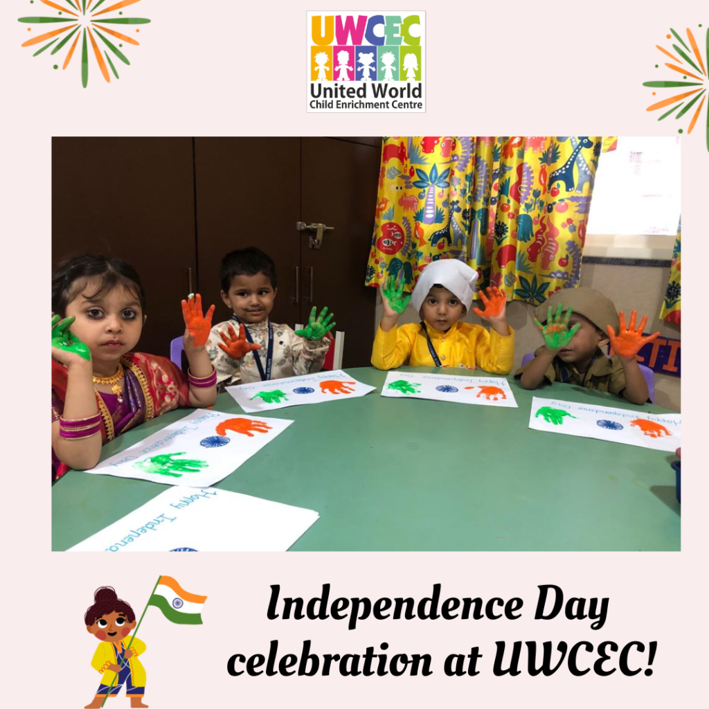 Teachers explained to the students the meaning of Independence Day. The national flag was shown and explained in the class. There were different activities related to the tricolor like the tricolor palm print and the tricolour lotus bird painting. Students were told the story of Independence Day and explained the importance of this day.