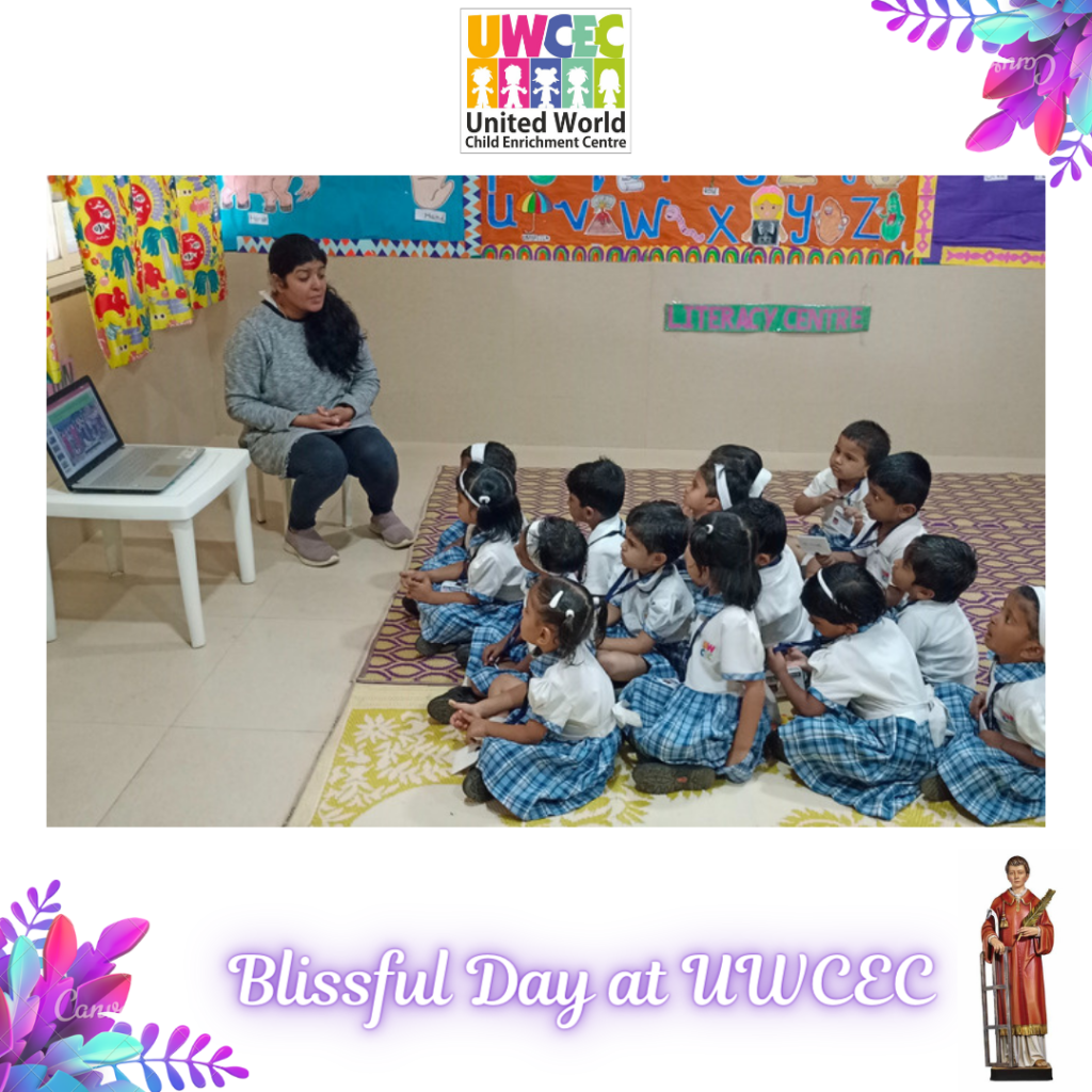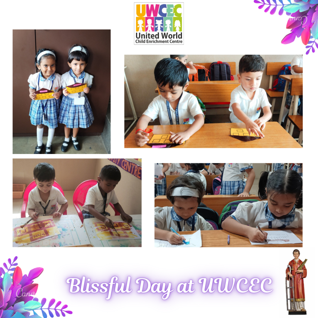 Students were explained about Saint Lawrence’s life, his work, his teachings and beliefs and especially his generous nature and his kindness through a power point presentation. They also did some art activities to imbibe the spirit of Saint Lawrence and to understand the true power of his blessings. The Nursery students did magic painting and painted their school building while the Jr Kg and Sr Kg students drew the picture of their school building on an A4 sheet.