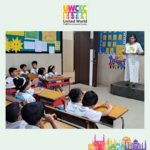 In UWCEC this year we introduced Hindi to the Sr kg students. They are learning the language in interesting ways. Teachers have started teaching the Hindi “swar” through simple words which the students can relate to easily. They are also helping the children revise Hindi with patterns like daya, vakra aadi rekha, khadi rekha.