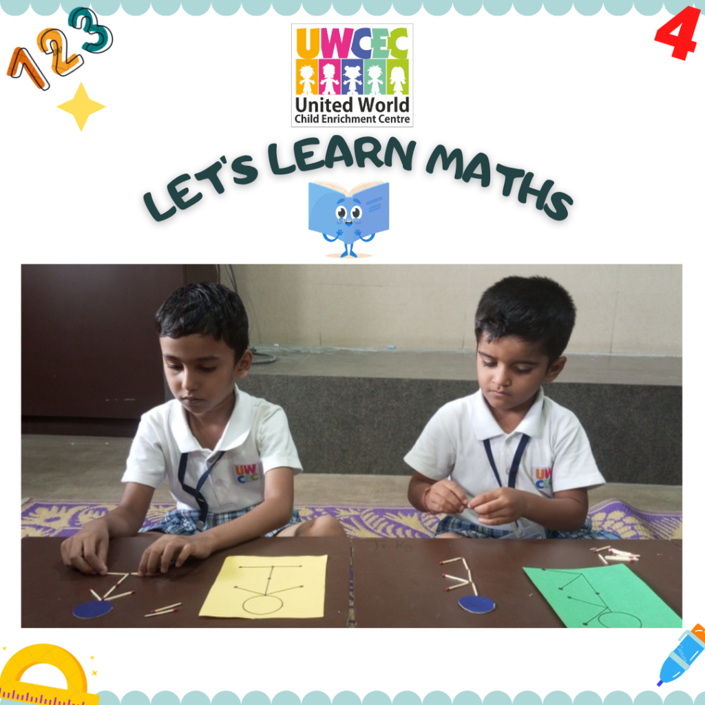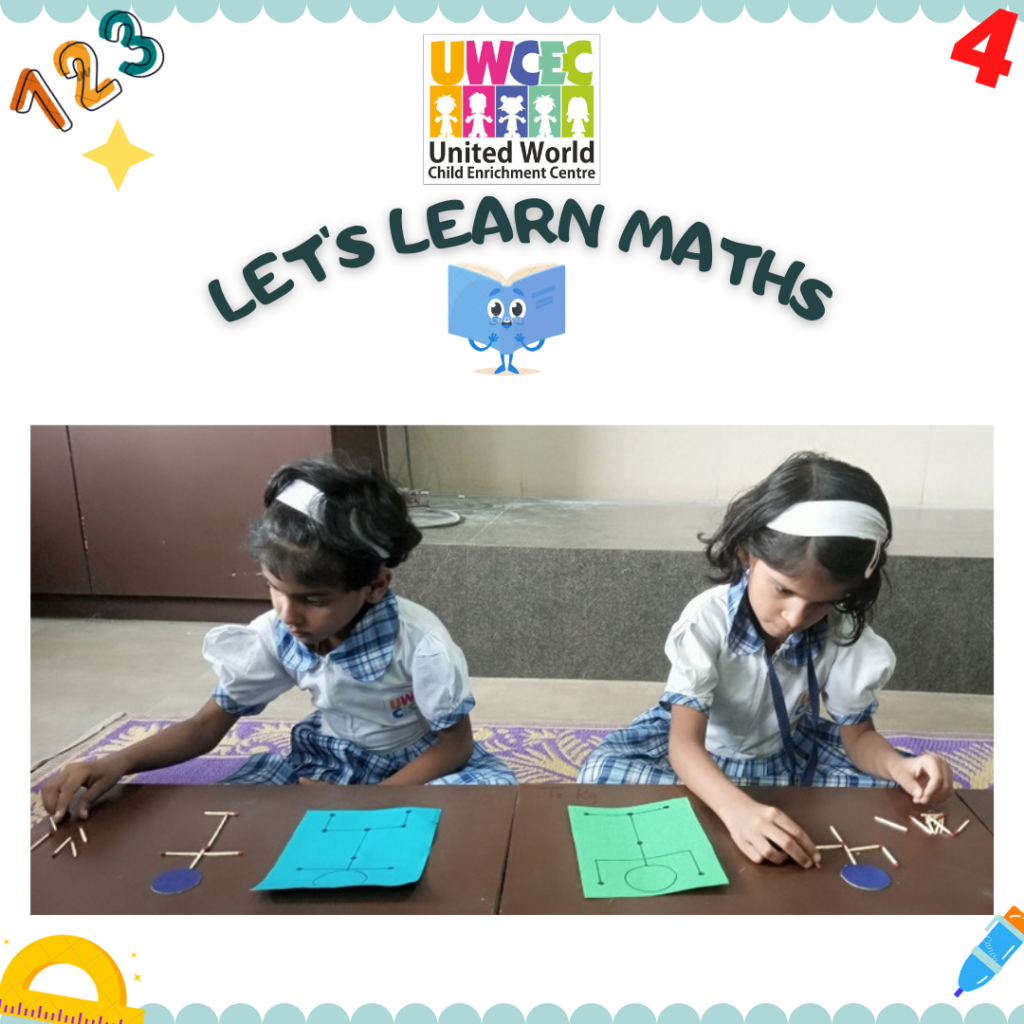 Counting and comparing numbers and shapes with objects is reinforced through different games. In addition they are also becoming familiar with tally marks. They are getting an overall practice as to how numbers are used for counting.
