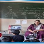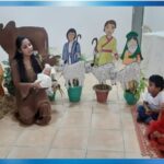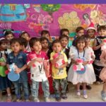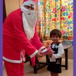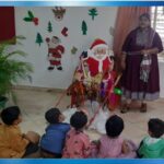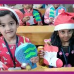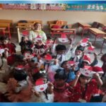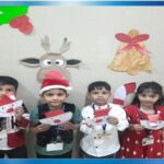 Santa’s visit to the class filled the students with glee and receiving gifts and goodies made them happy to no end.Children made their own Christmas tree and Santa cap with the help of their teacher.