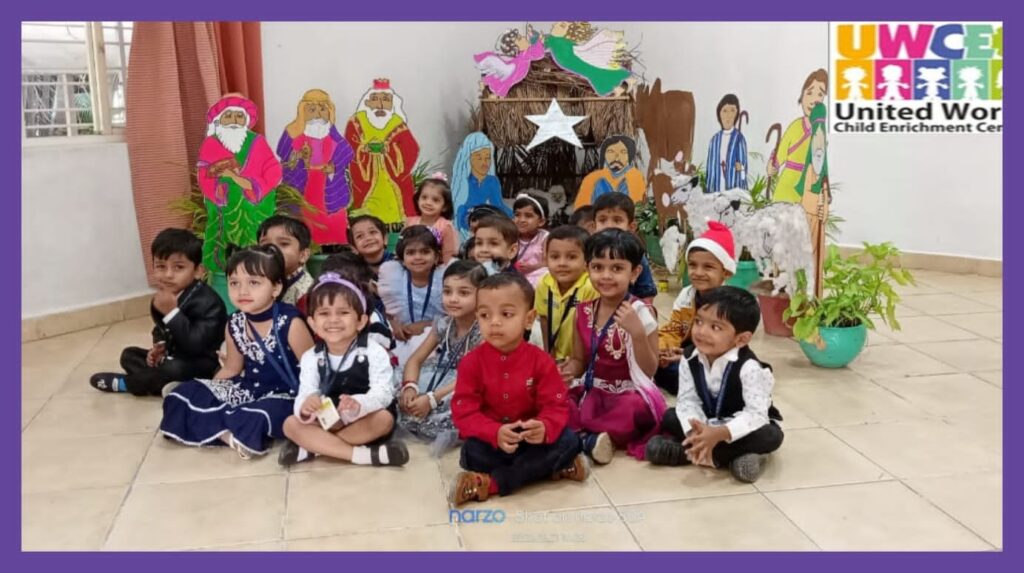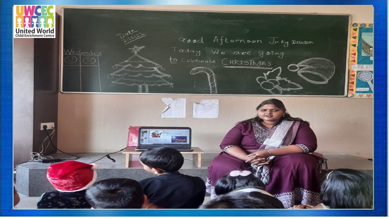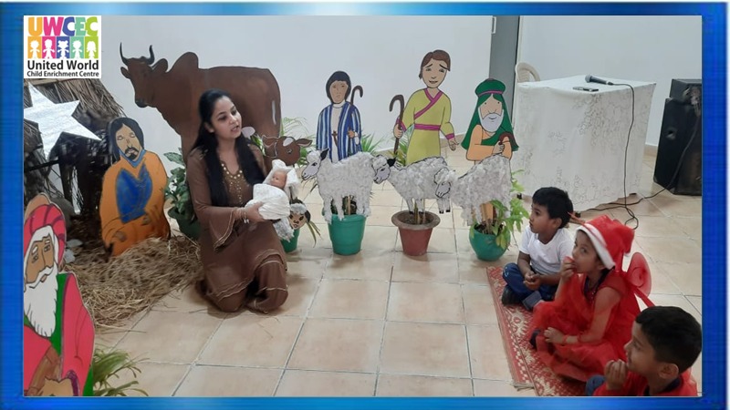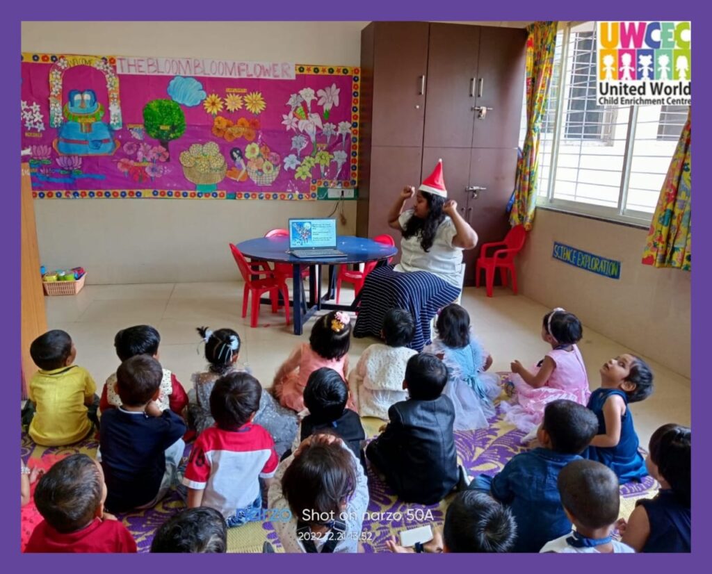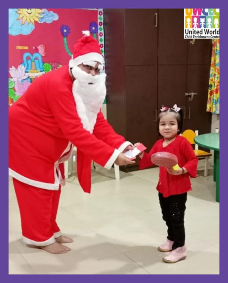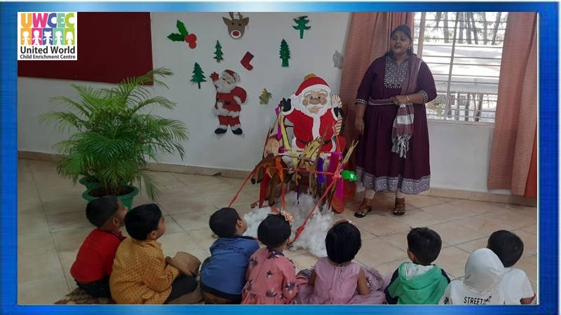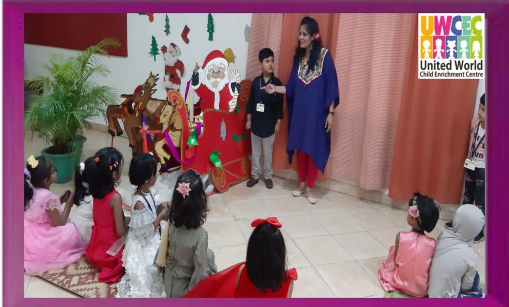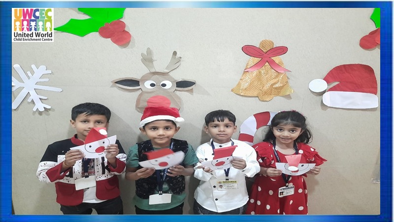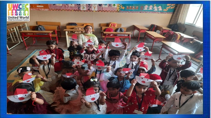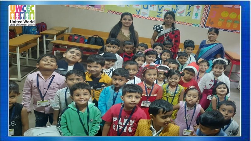 UWCEC organized a Christmas carnival in school. All the children and teachers dressed up in colourful attire. Teachers explained about the birth of Jesus and the significance of this day through power points.Students were acquainted with the story of Christmas and the other popular symbols of the festival – Santa Claus and snowman. Giant sized models of the Santa riding his sleigh, snowman, a church and a manger were put up in a festively decorated room. Classes and corridors were done up in festive red, white and green.
