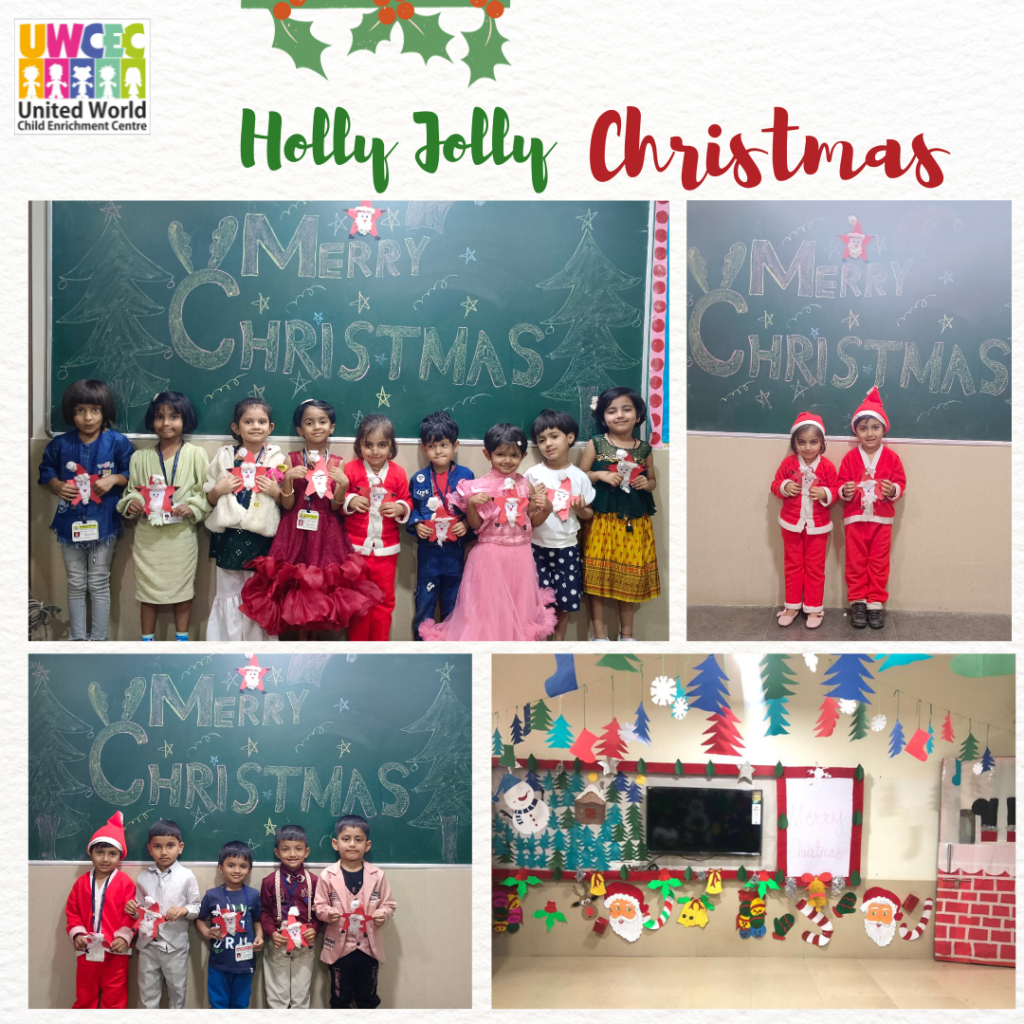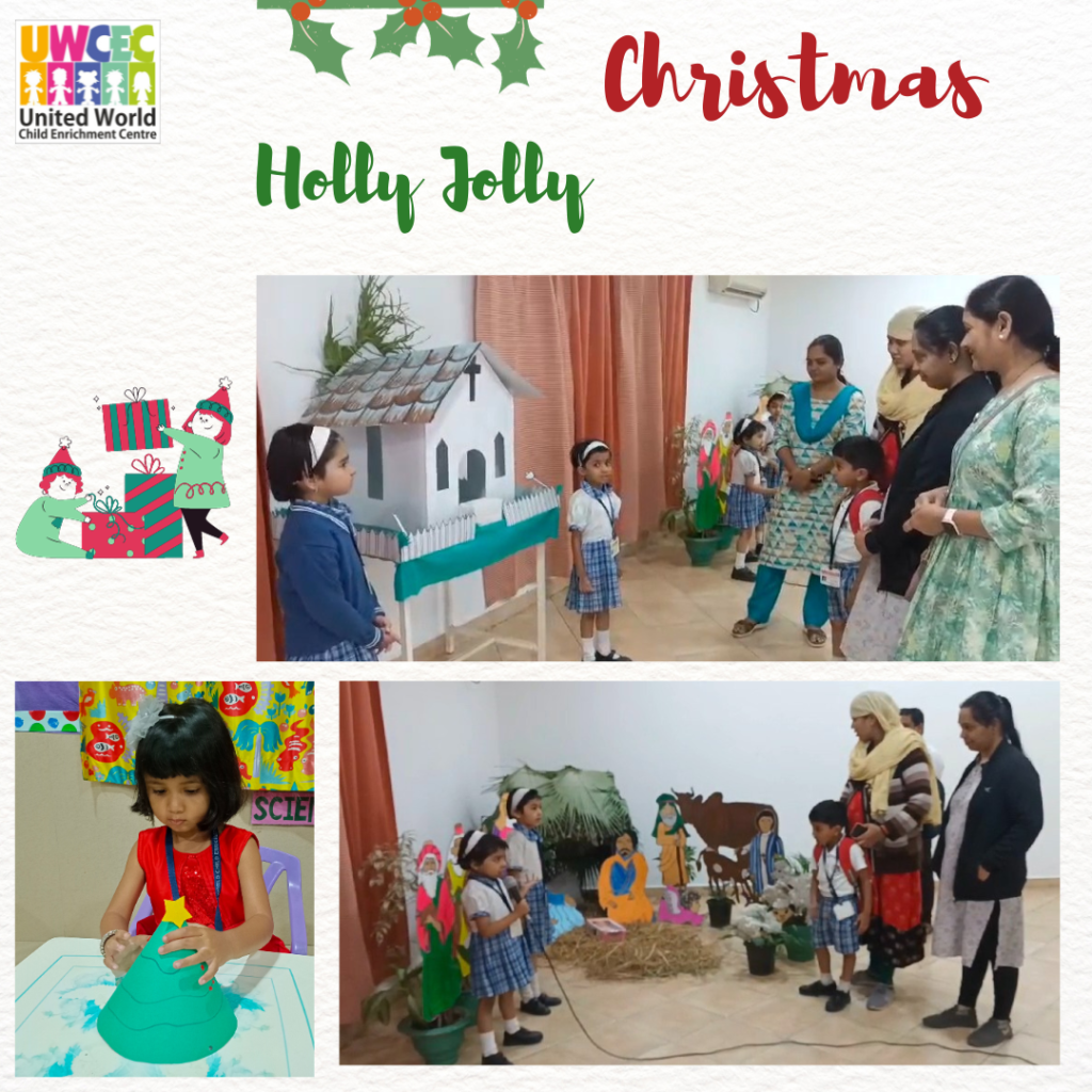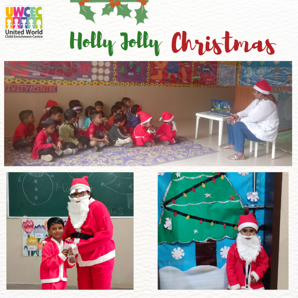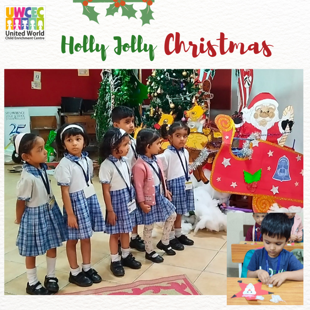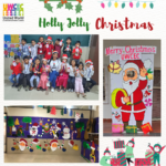 Teachers explained the significance of Christmas through a PowerPoint and story video followed by art activities like making Xmas tree hats, Santa Claus face puppets and a star with Santa’s face on it.