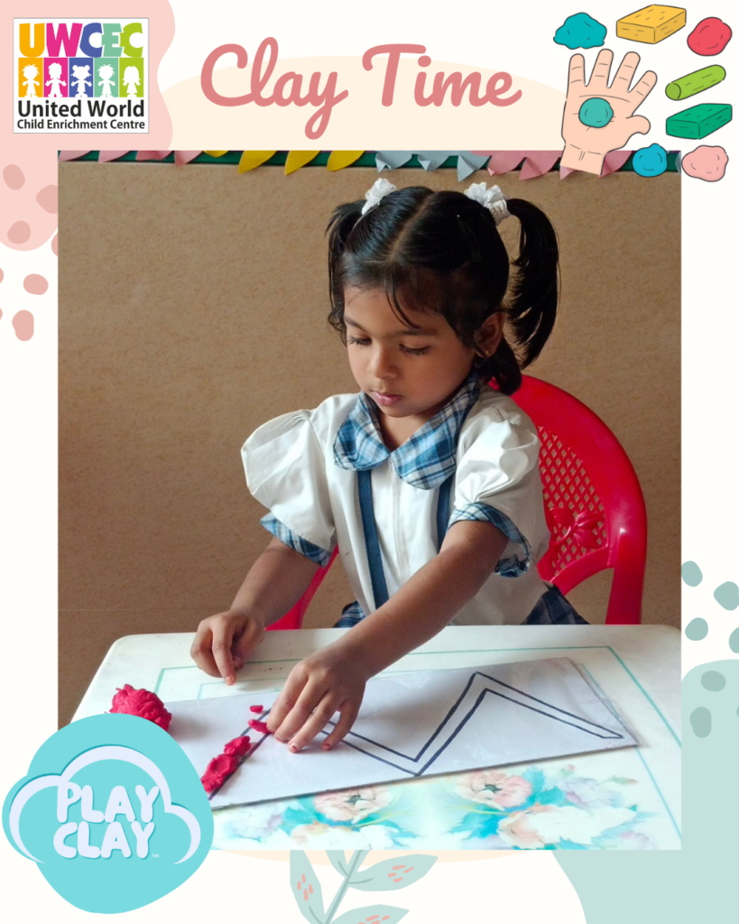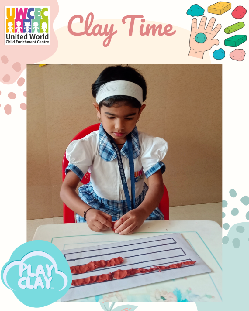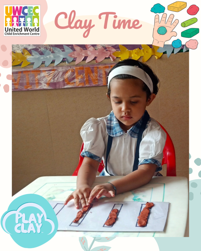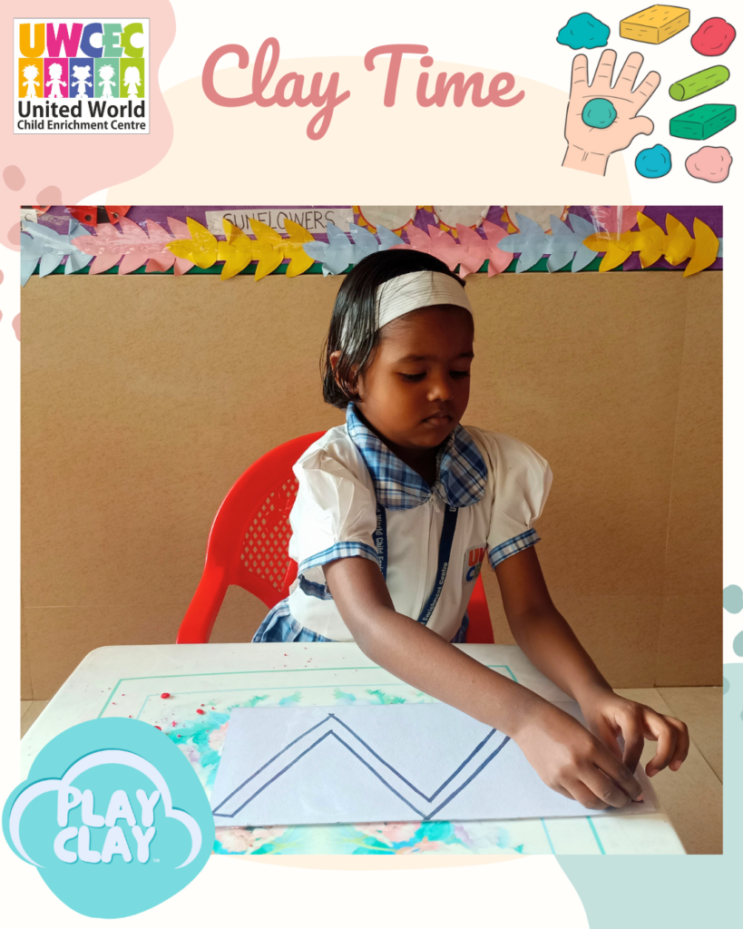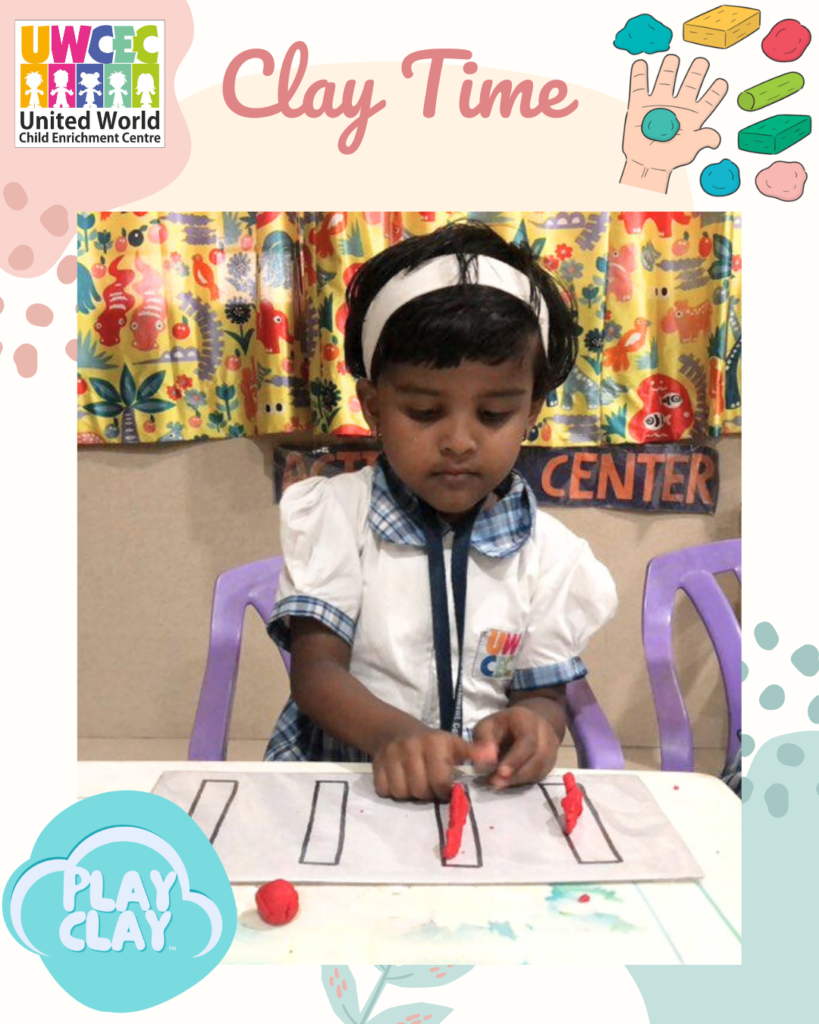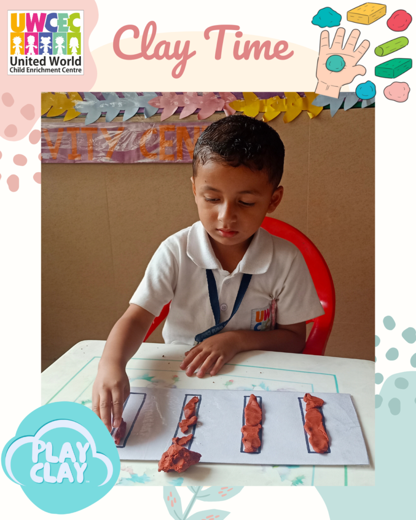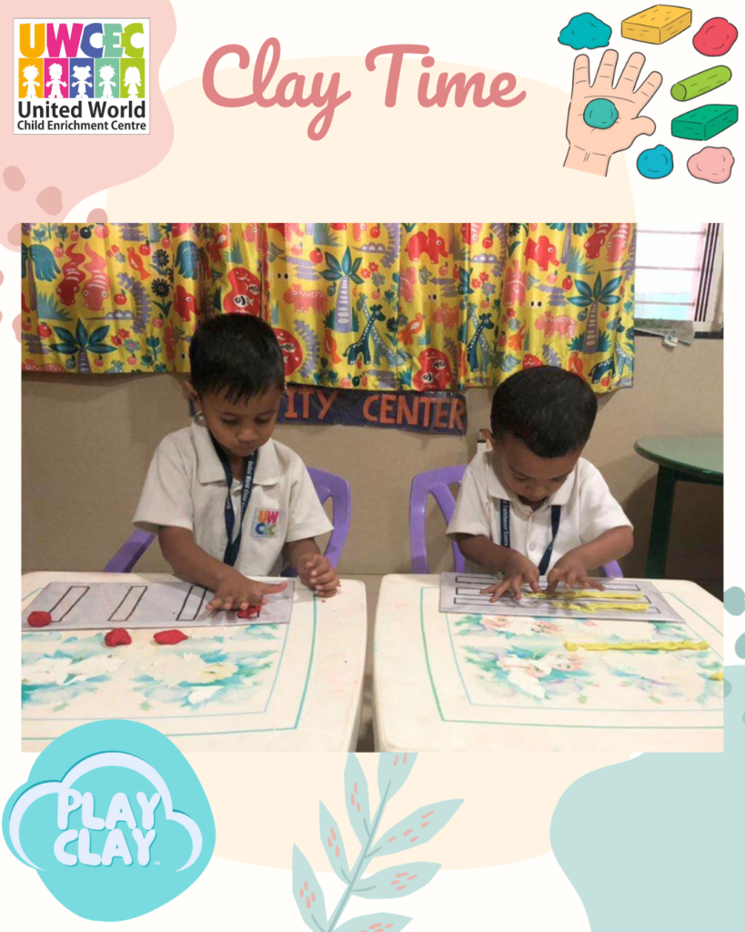 The tiny tots of UWCEC used various techniques such as pinching, rolling, and pressing to create the patterns. Kids rolled out the clay to create long, thin shapes. By pressing the clay down, they created different textures as well. This process helped them develop their problem-solving skills and hand-eye coordination.