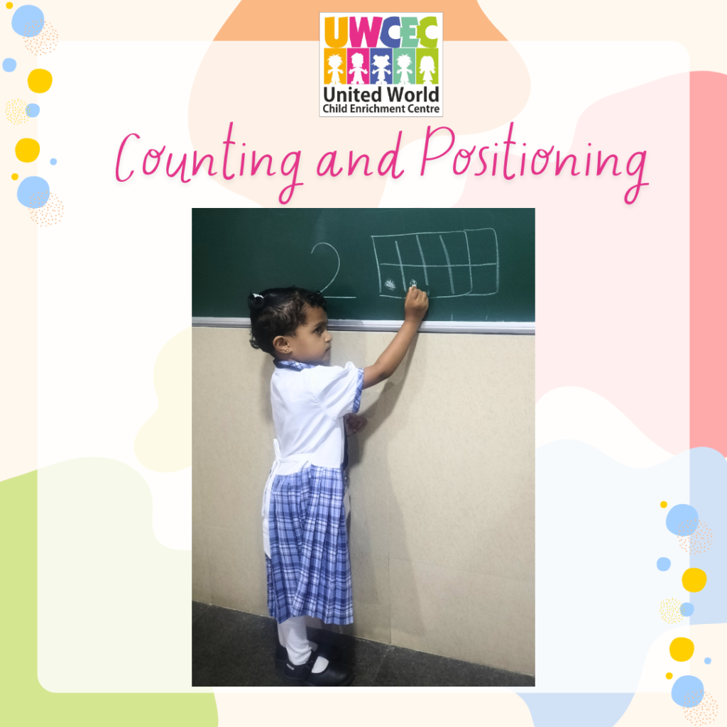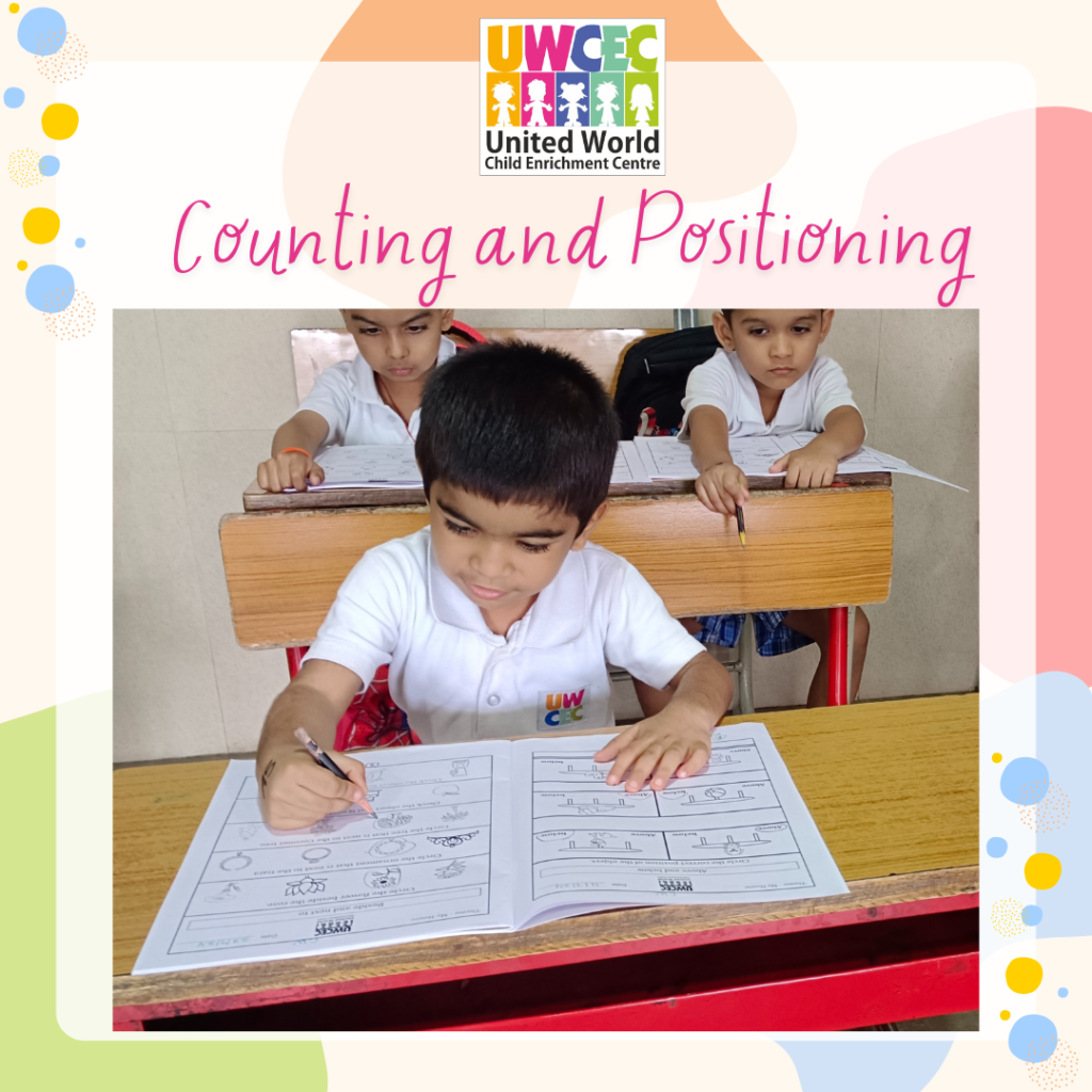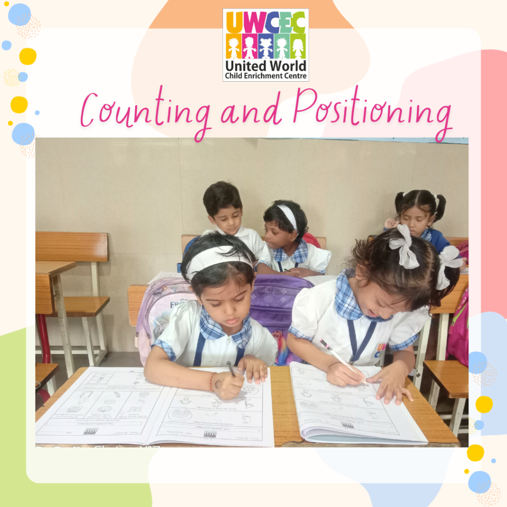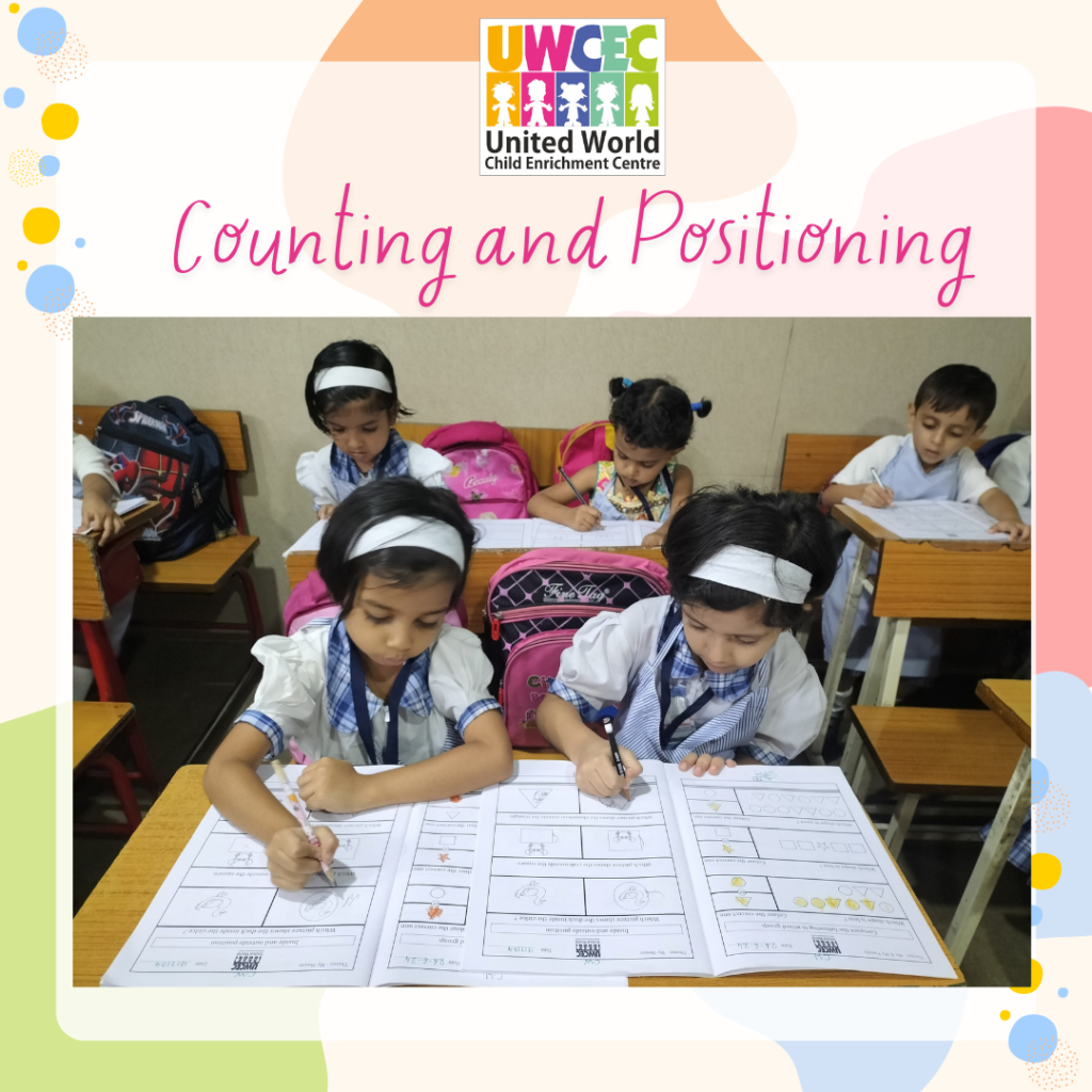 So, at UWCEC, children were taught counting and positioning with the help of objects and ten frames and through the worksheets Teachers took the reinforcement of the concept also to ensure complete understanding.