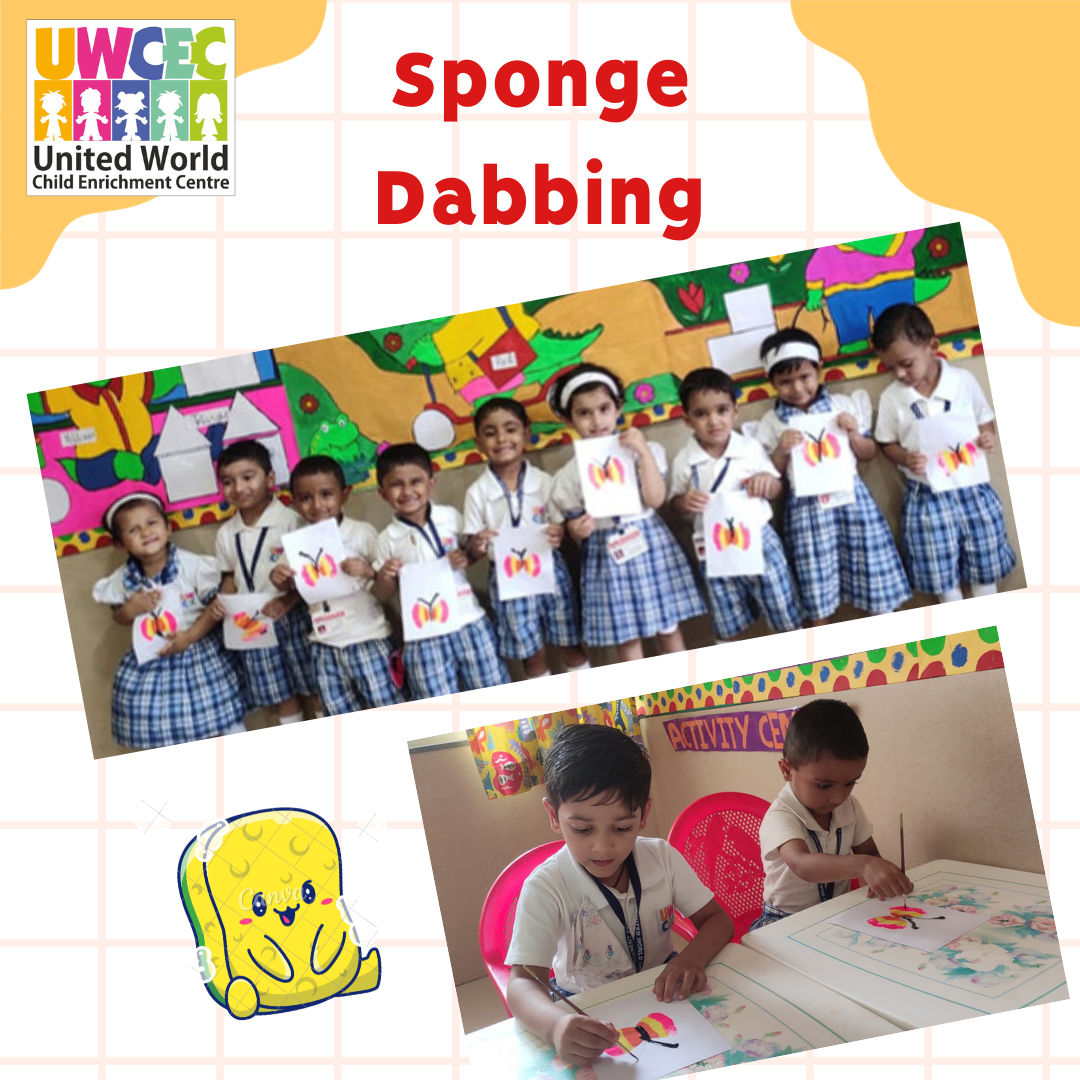 A Sponge dabbing activity was done in UWCEC to allow the children to touch, smell and experiment with paints. Through this activity children got to explore various painting tools. Sponge dabbing is a very versatile art activity which caters to any lesson theme and can be enjoyed by children of all ages.