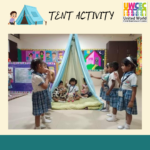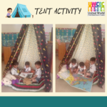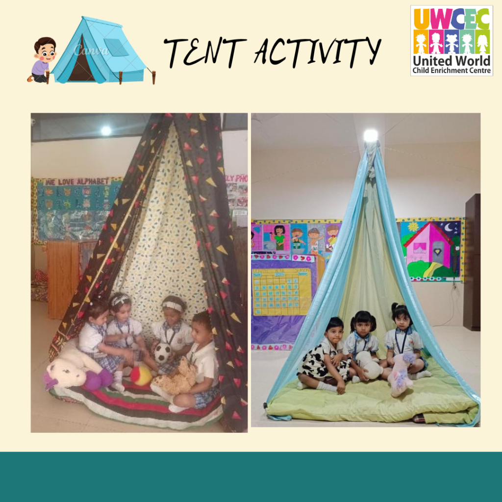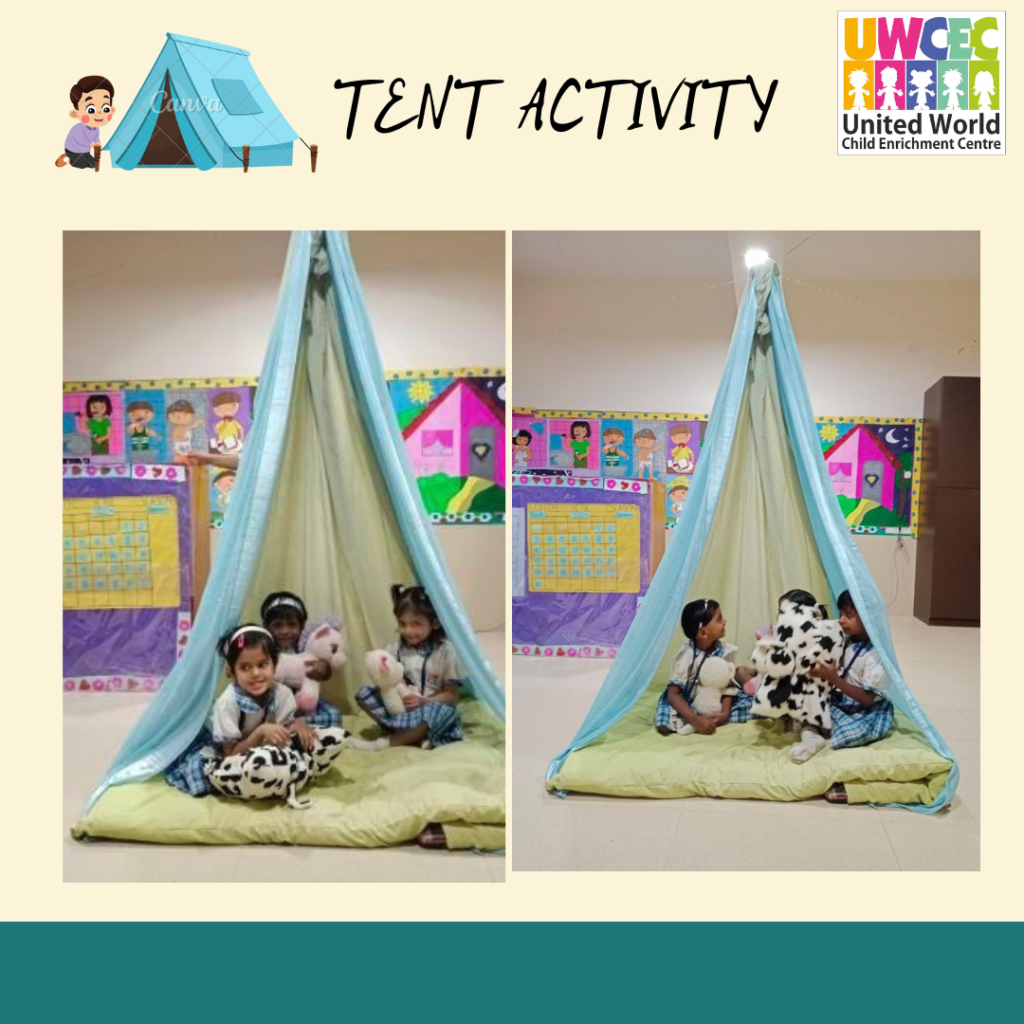 In UWCEC, the students of nursery school explored the art of tent making and created their very own cozy retreat. They made their tent with the help of a mattress, blankets and sari. They then decorated it with the help of stuffed toys. They placed each item with love and care.