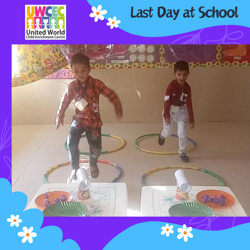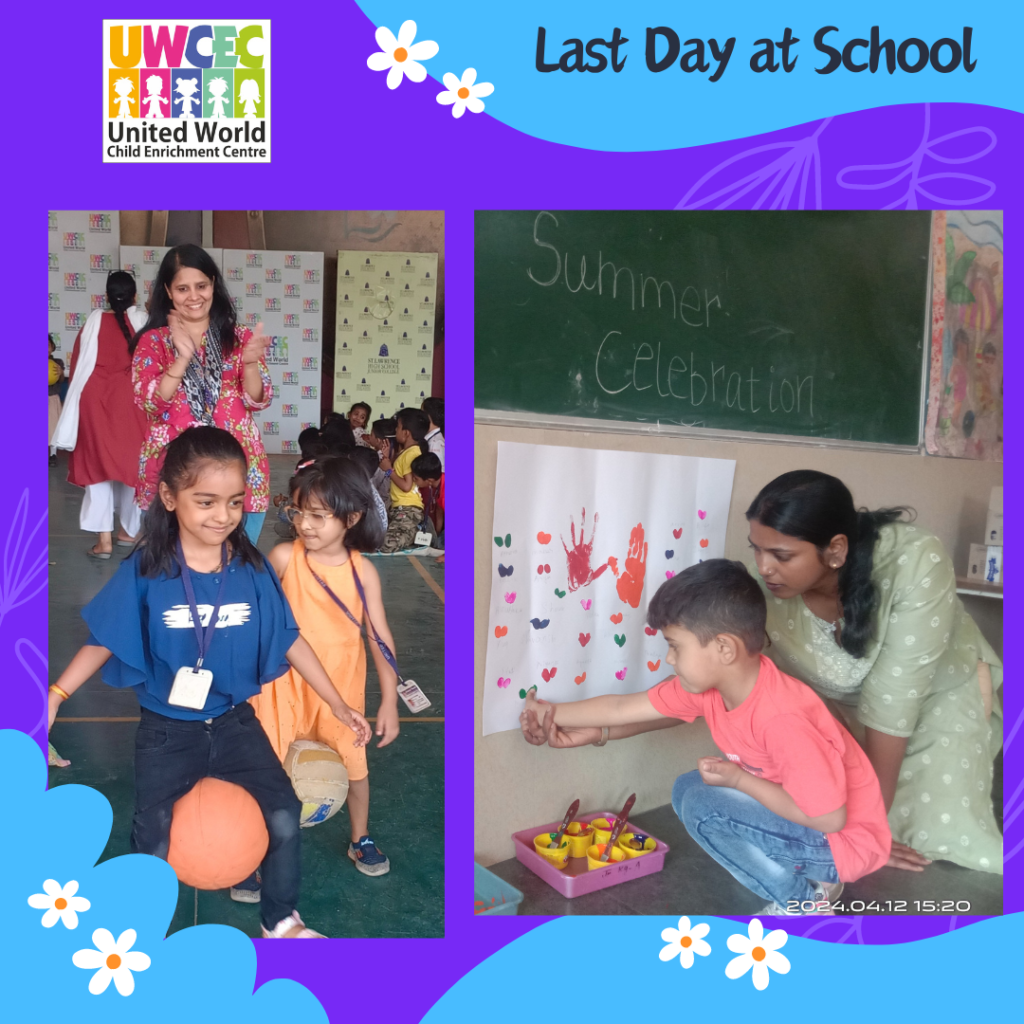 UWCEC organised a summer party for the tiny tots on their last day of school. Everyone arrived at school in their summer attire with sunglasses and hats. The teachers had organised interesting games and activities which kept the little ones entertained throughout the day. Students enjoyed moving their hands in colourful paints while doing activities and had fun playing games such as penguin waddle, blow the ball and jump on shapes.